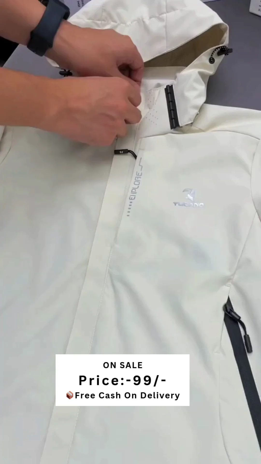 + Free ShippingProduct Details – White solid tailored jacket, has a hooded, 2 pockets ,has a zip closure, long sleeves, straight hemline, mesh lining