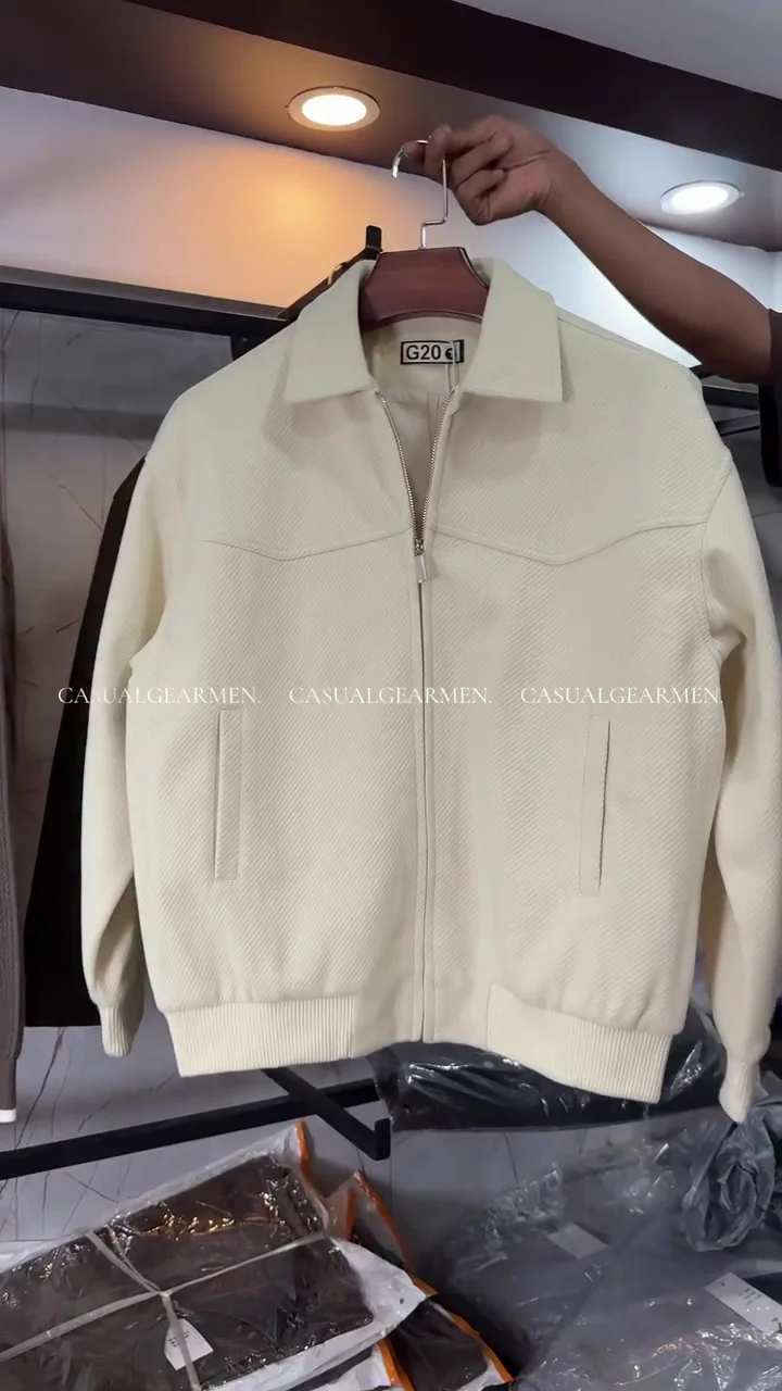 Redefine your casual outerwear collection with this sophisticated Cream Textured Jacket. Bridging the gap between a classic bomber and a refined Harrington jacket, this piece features a unique diagonal weave texture that adds depth and luxury to a monochromatic look. Designed for the modern man who values both comfort and sharp aesthetics, this jacket is the perfect layering piece for transitional weather.