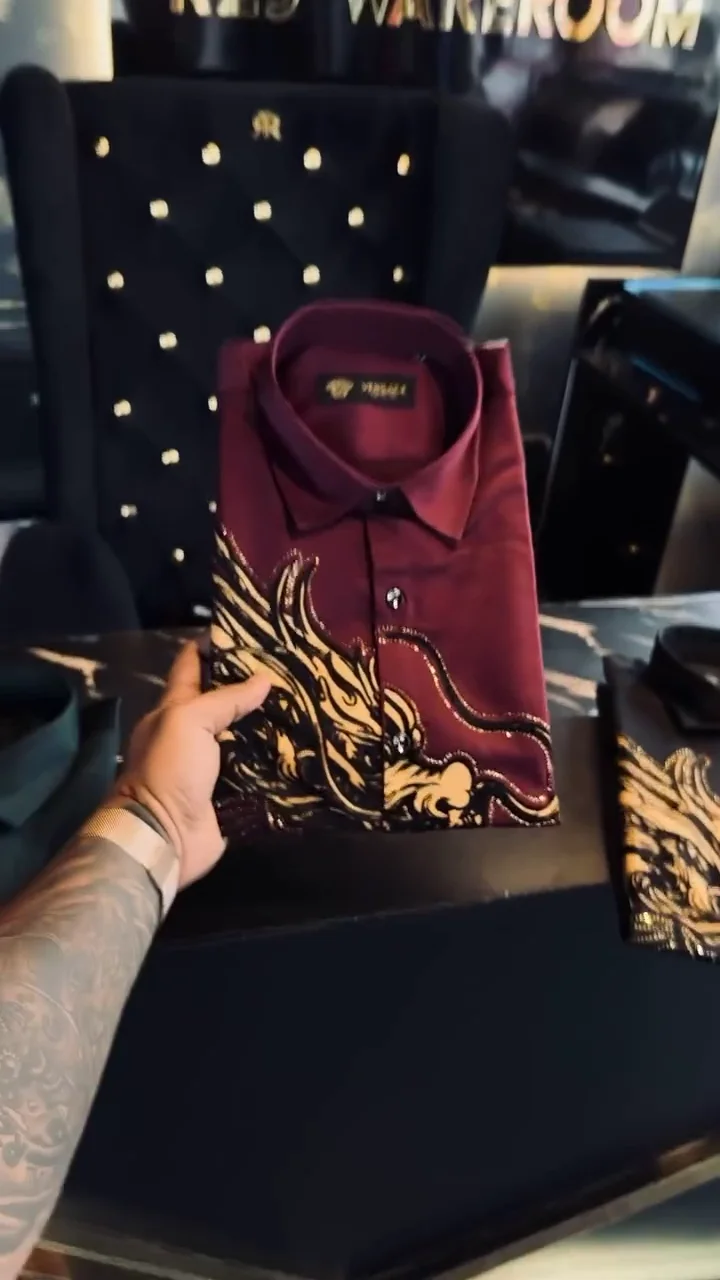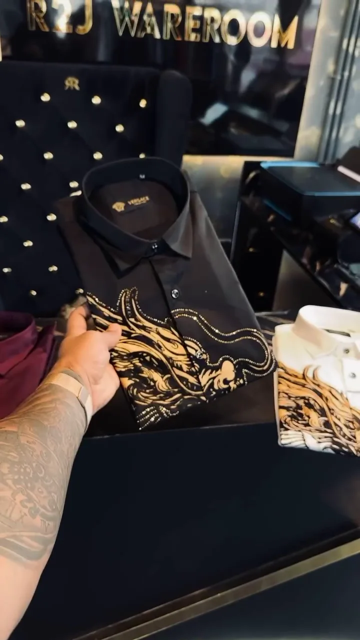 Make a bold style statement with this men’s designer printed formal shirt, crafted for those who appreciate distinctive fashion. Made from premium-quality fabric, it offers a smooth texture, breathable comfort, and a refined finish. The striking artistic print adds a luxurious edge, while the tailored fit and classic collar maintain a polished appearance. Perfect for evening events, parties, festive occasions, or elevated casual wear, this shirt pairs effortlessly with formal trousers or denim for a standout look.