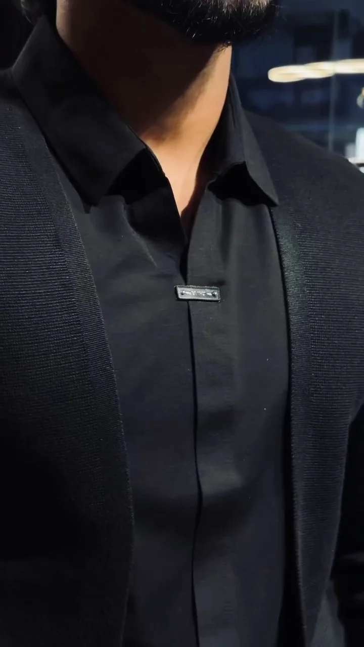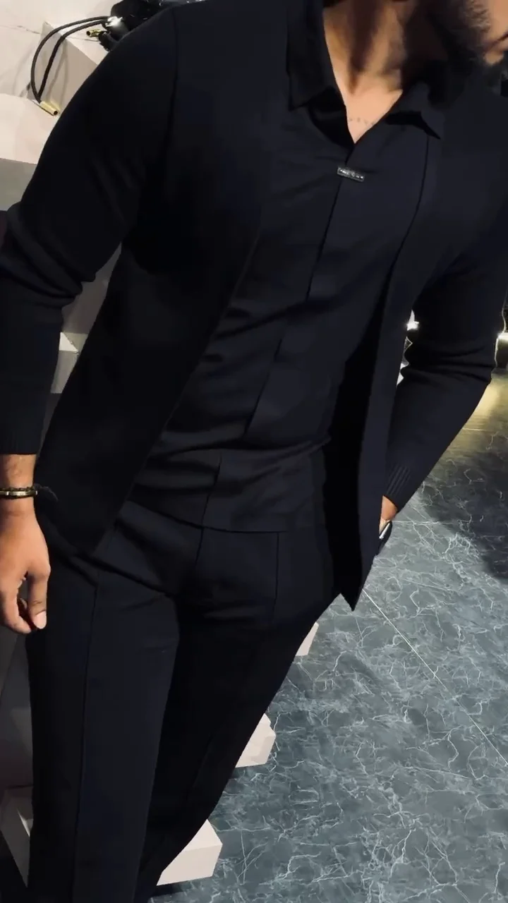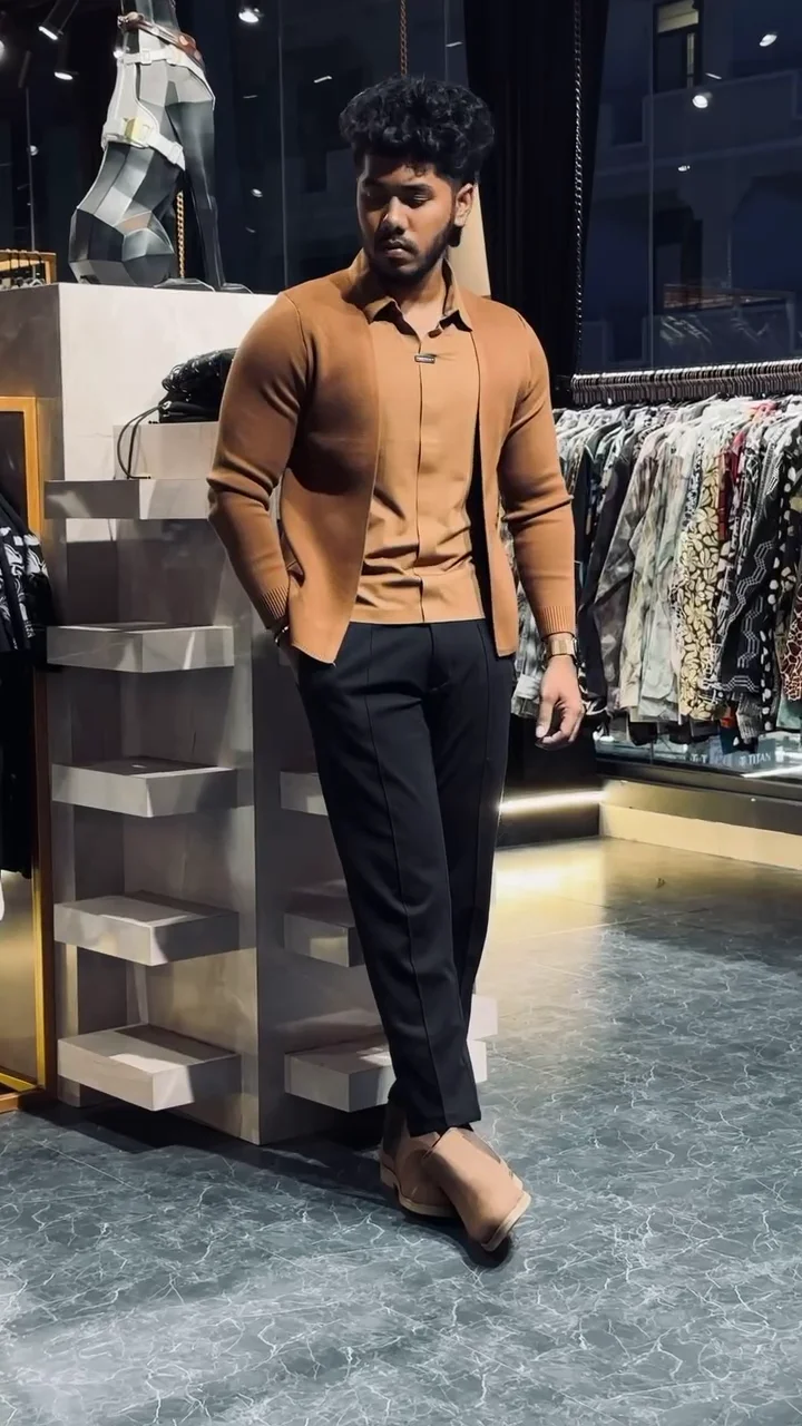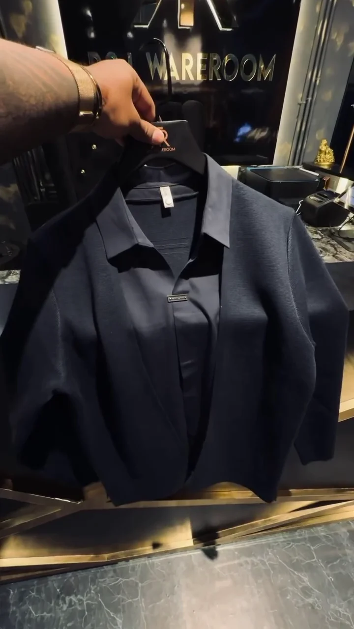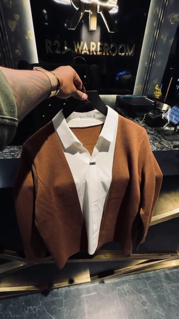 Men’s Slim-Fit Layered Knit Shirt with Open Cardigan Style