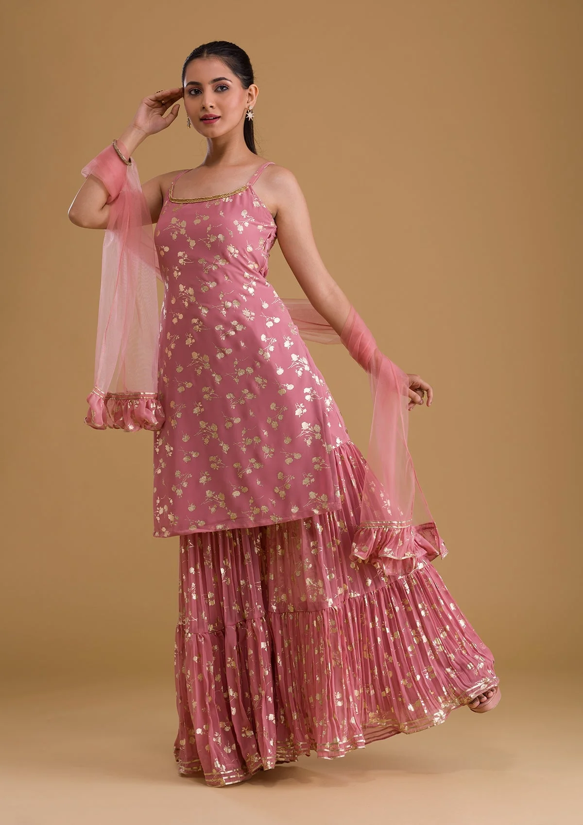 Pink Print Georgette Designer Sharara Suit