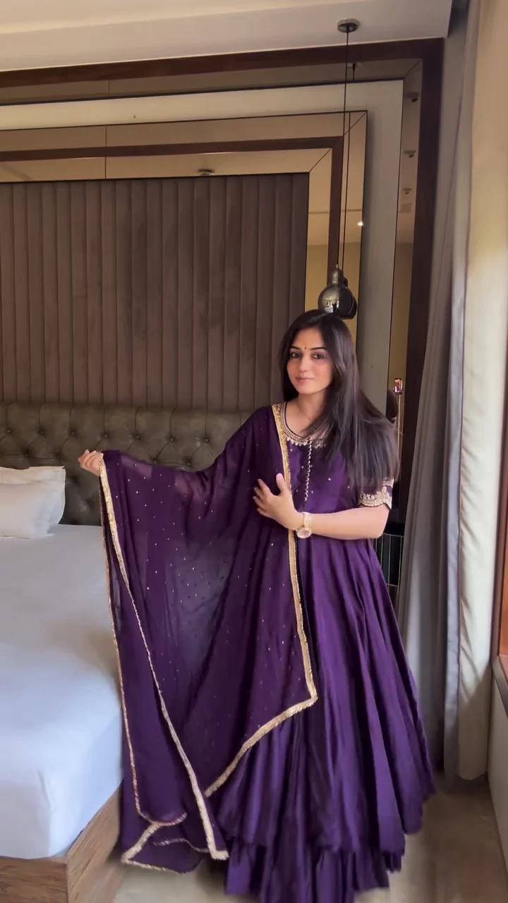 PURPLE COLOUR ANARKALI THREE PIECE SUIT