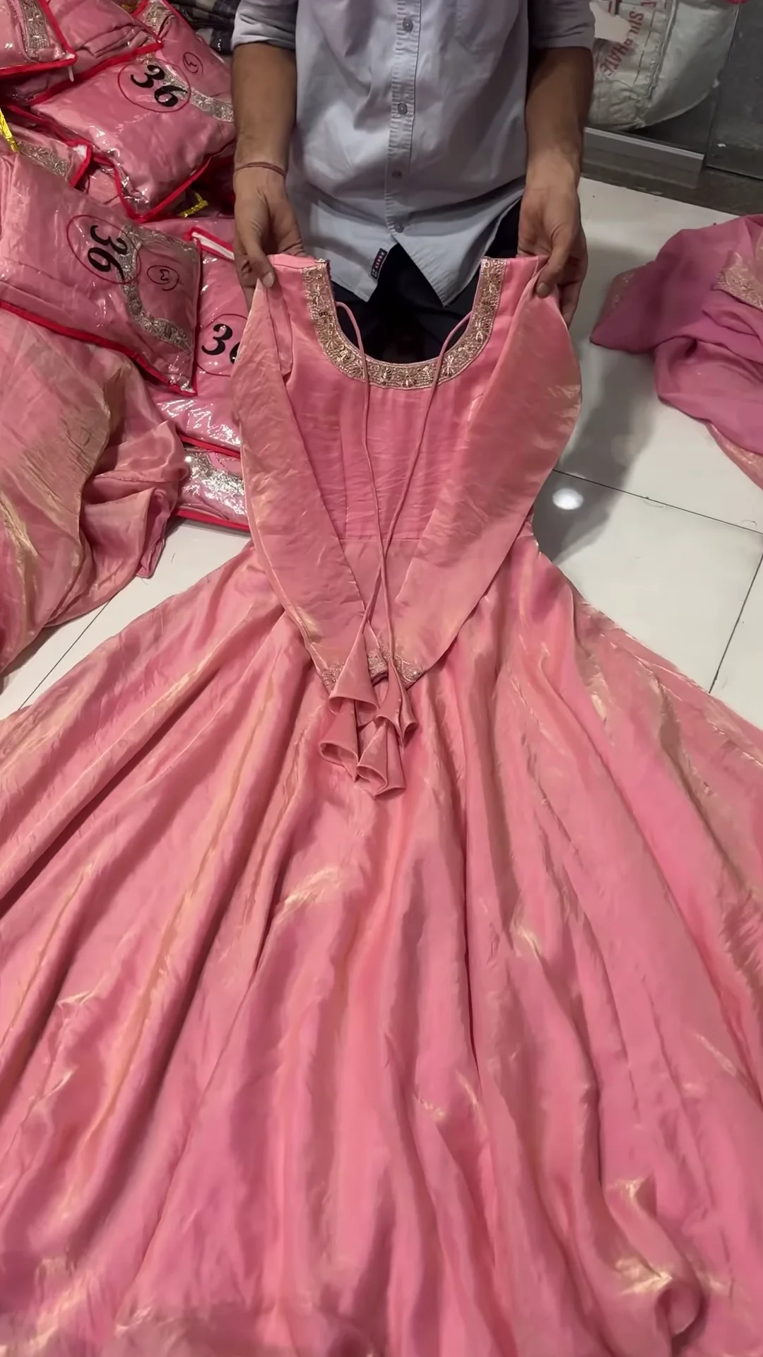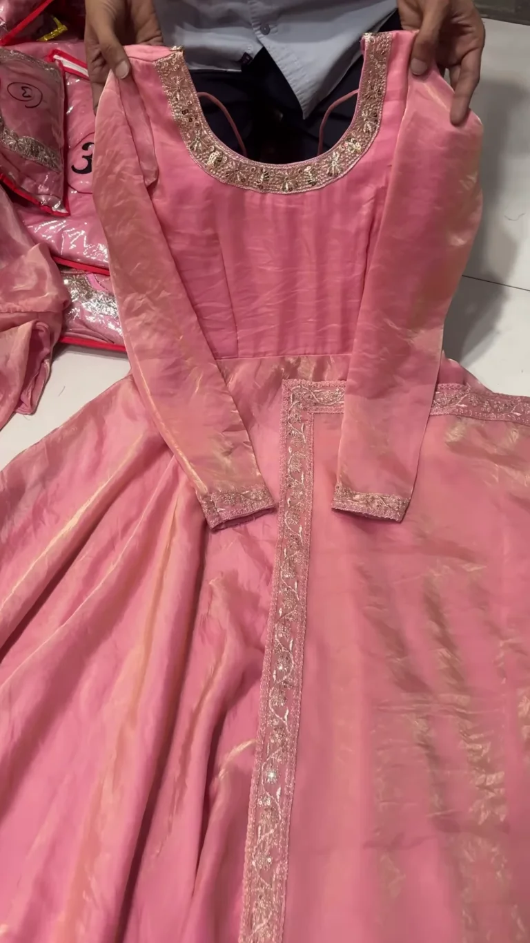 Pink printed woven maxi dress with embellished detail, has a round neck, long sleeves, flared hem